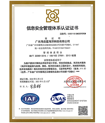 作为一家高新技术企业,我司具备智能视像水位计、数据采集装置在内的157项专利及软著,拥有国家测绘资质、环境管理体系认证等多项资质。我司也是中国海洋学会、中国海洋工程咨询协会、广东海洋协会、国家海洋信息产业发展联盟、广州市科学技术协会会员单位等,被评选为“2019广州高科技高成长20强企业”、“广东省‘专精特新’民营企业扶优计划培育企业”和“广东省科普教育基地”,且曾获得过广东省电子信息行业科学技术奖一等奖、广东省测绘学会测绘地理信息工程奖二等奖等奖项。